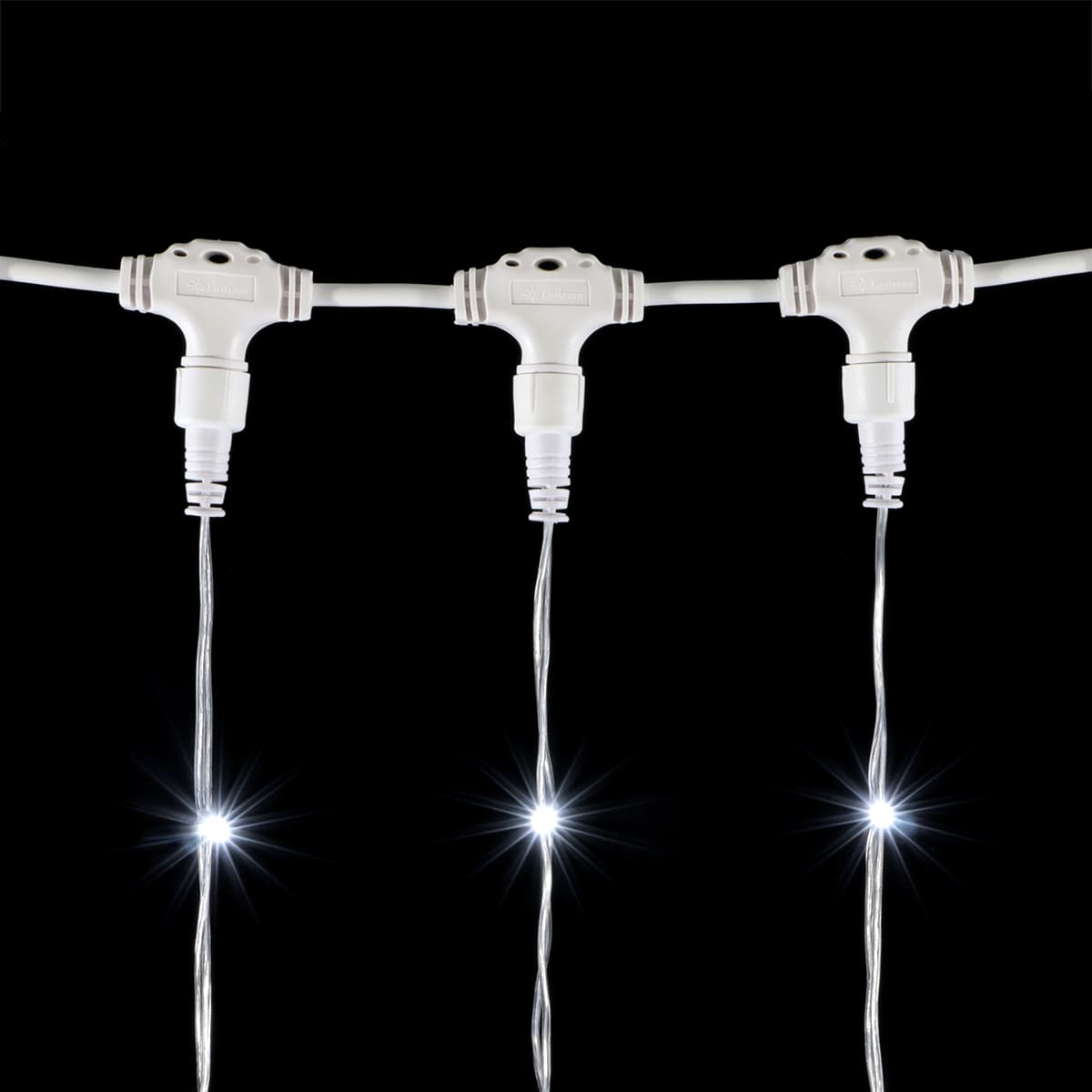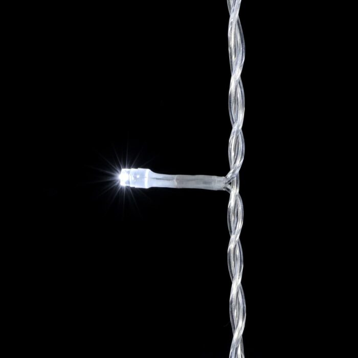 Гирлянда выполнена на прозрачном ПВХ-проводе, который практически сливается с фоном. Это особенно важно для светлых фасадов, витрин, колонн и заборов, где видимый кабель может портить эстетическое восприятие. Провод сохраняет эластичность даже в сильный мороз, что облегчает монтаж в зимний сезон.