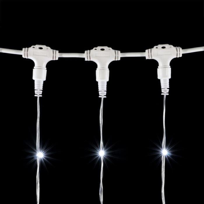 В комплект уже входит кабель подключения, поэтому гирлянду можно сразу установить и запустить. Гибкая структура занавеса облегчает крепление к фасадам, перилам, карнизам, входным аркам и сценическим конструкциям.