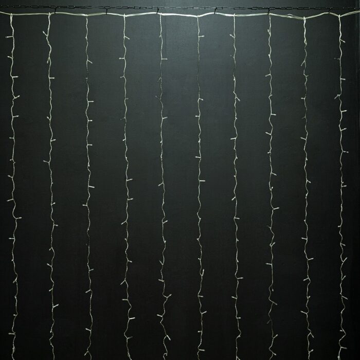 Гирлянда «Занавес» 2×3 м в тёпло-белом цвете с мерцающим эффектом создаёт уютную и праздничную атмосферу. Подходит для украшения окон, стен и залов. Работает от сети 220 В, рассчитана на длительное использование.