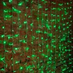 Профессиональная гирлянда-занавес 2×3 м с насыщенным зелёным свечением. 448 LED, IP65, морозостойкость до –25 °C, подходит для фасадов, деревьев и уличных конструкций.