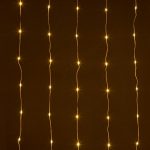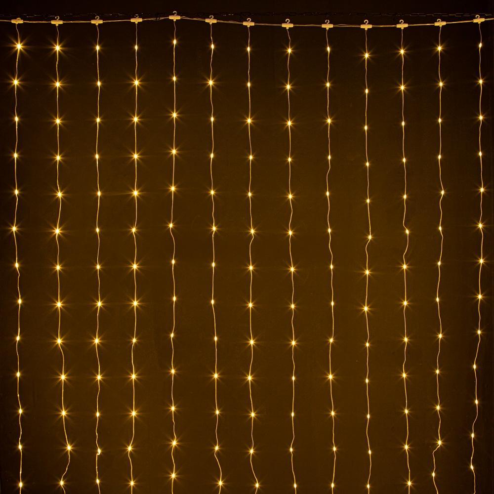 Размер 3×2 м делает этот занавес удобным для оформления больших поверхностей: оконных проёмов, витрин, стен и перегородок. 384 светодиода равномерно распределены по всей площади, создавая густое сияние без пробелов и затемнённых зон.