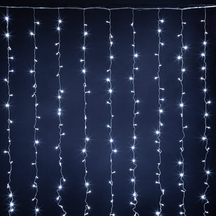 Гирлянда «Занавес» 3×3 м превращает любую поверхность в сияющее полотно света. Белые огоньки расположены густо и равномерно, поэтому при включении создаётся впечатление живого светового дождя. Благодаря мерцанию часть диодов мягко мигает, что делает свечение динамичным, но не раздражающим глаз.