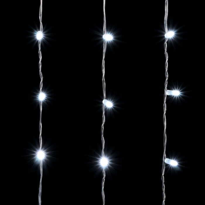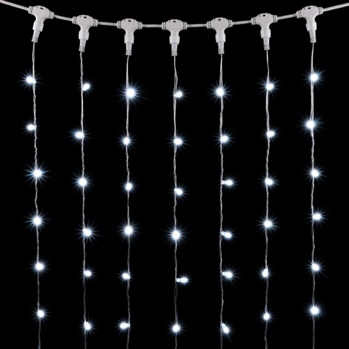 Профессиональная гирлянда-занавес 2×3 м с колпачками и ярким белым свечением. Прозрачный ПВХ-кабель, IP65, 600 LED, соединение до 10 секций. Идеальна для уличного декора фасадов, колонн и заборов.