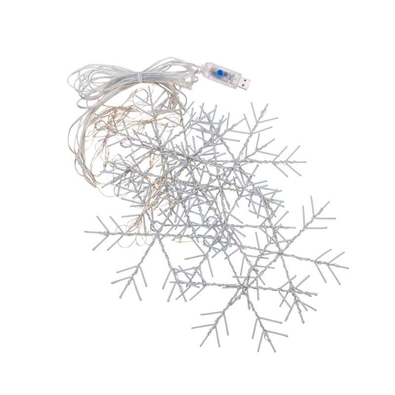 Белое свечение создаёт классическую праздничную атмосферу, которая подойдёт как для домашнего уюта, так и для коммерческих интерьеров. Гирлянда помогает быстро преобразить пространство, добавить яркости и придать помещению торжественный вид.