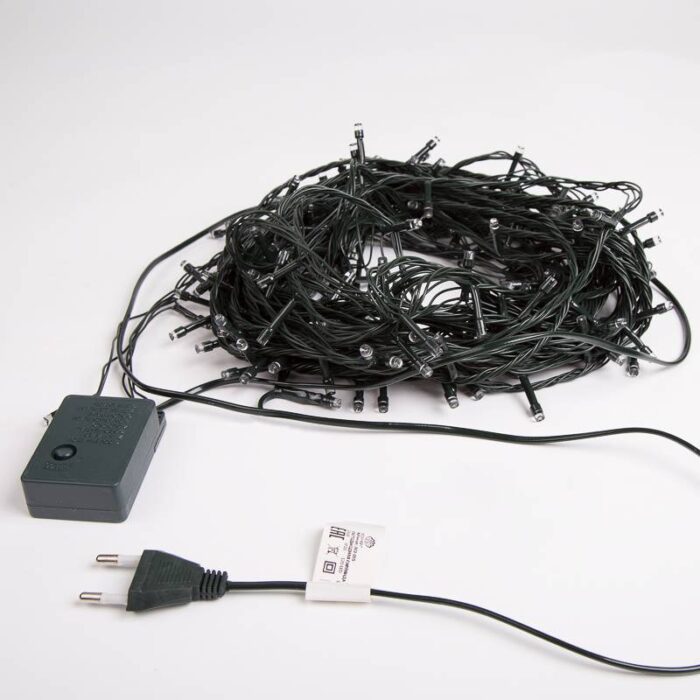 Яркая синяя гирлянда длиной 15 метров с 8 режимами свечения и тёмно-зелёным проводом. Подходит для оформления ёлок и интерьеров. Подключение в комплекте.