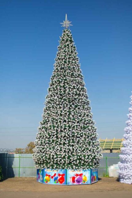Уличная новогодняя искусственная ель от компании JoyLed, представляет собой сборную конструкцию из металла, обеспечивающую высокую прочность и устойчивость даже во время сильных дождей и ветров. Металлический каркас, обработанный порошковым покрытием, защищен от коррозии и неблагоприятных внешних факторов. Эта конструкция выполнена в форме конуса с центральной осью и изогнутыми элементами. Уличная ель устойчива к ультрафиолетовому излучению и температурным перепадам, что гарантирует её долговечность на протяжении нескольких сезонов.