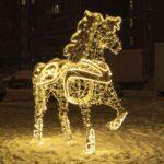 Новогодняя световая композиция «Три лошади с санями»: мощный праздничный акцент