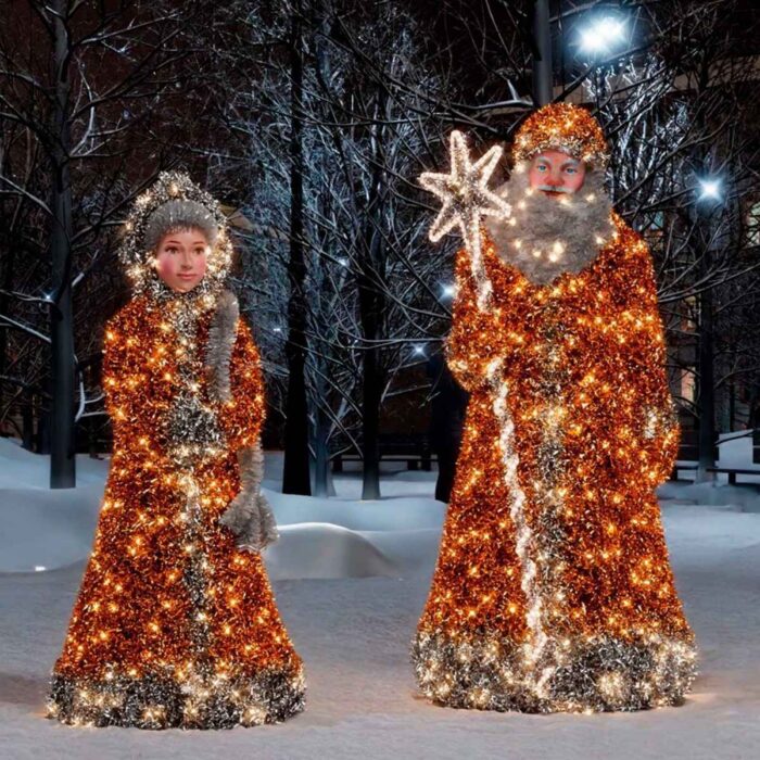Фигуры «Дед Мороз» и «Снегурочка» — это не только украшение, но и эмоциональный элемент. Они создают ощущение праздника, объединяют поколения и вызывают ассоциации с детством, ожиданием подарков и радостью зимних дней.
