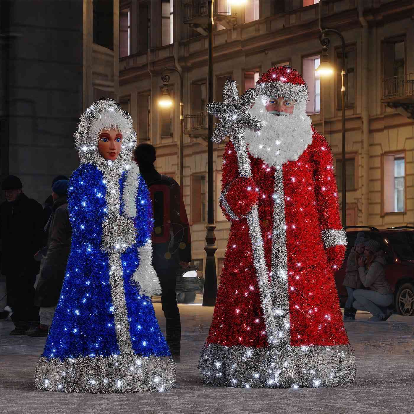 Дед Мороз: 0,9 x 2 x 0,9 / Снегурочка: 0,8 x 1,8 x 0,8 |