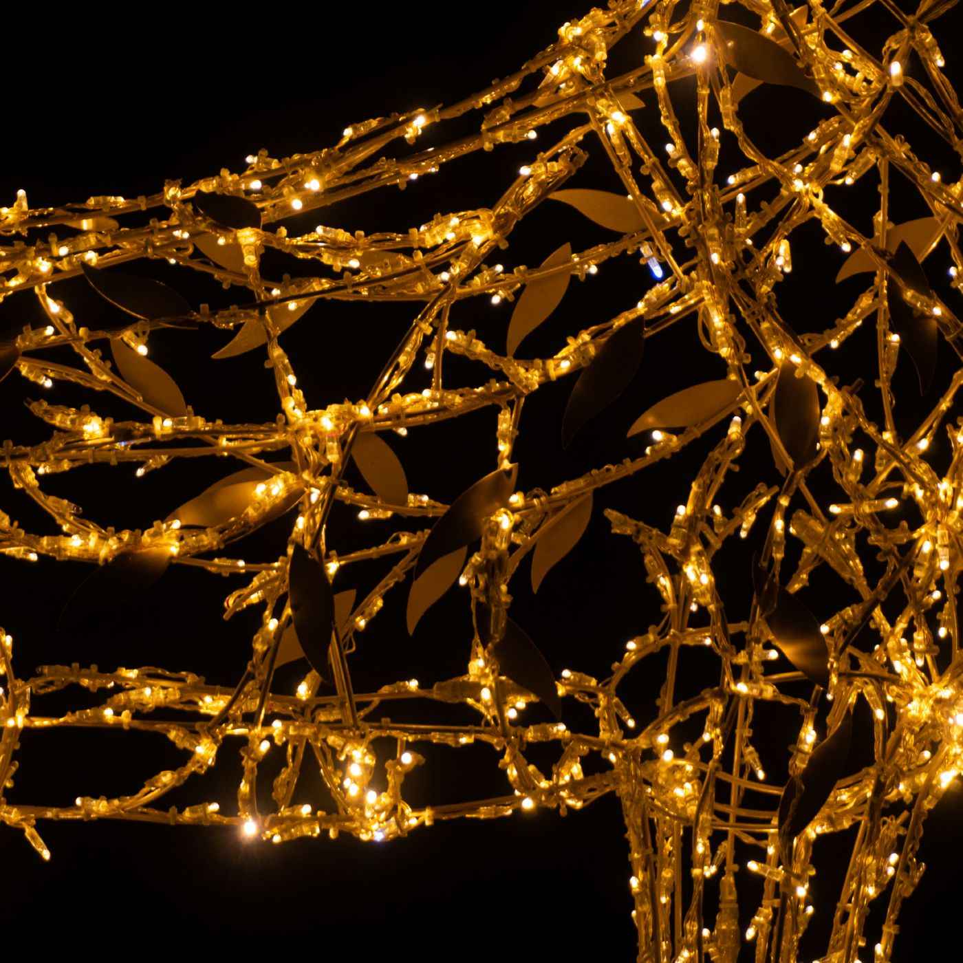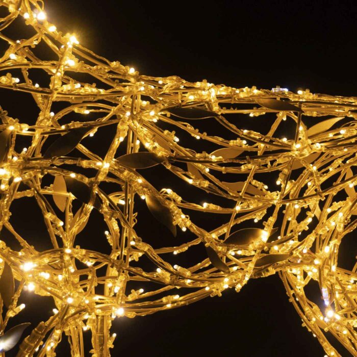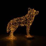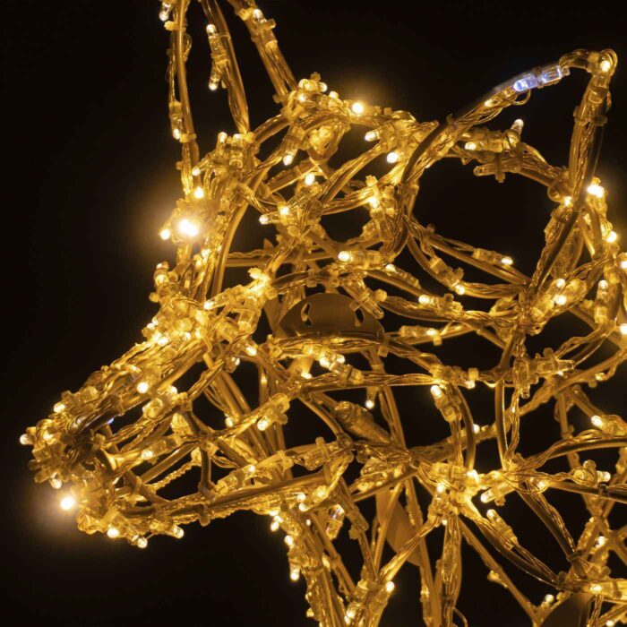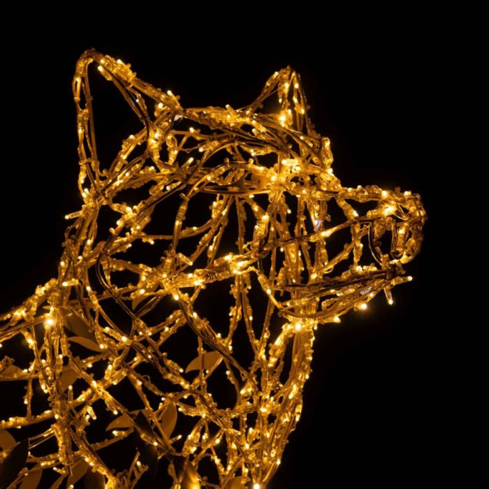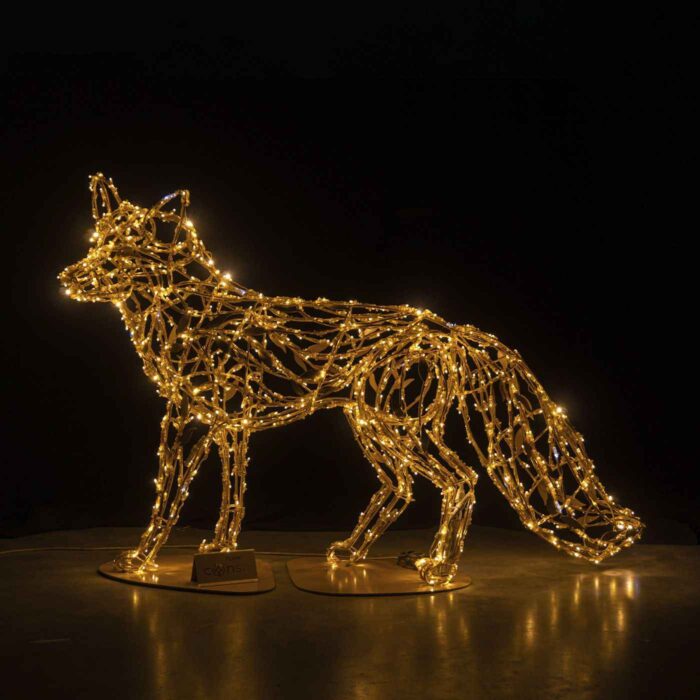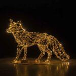 Уличная световая инсталляция из золотых светодиодных фигур лисы и волка для новогоднего оформления сквера или парка.