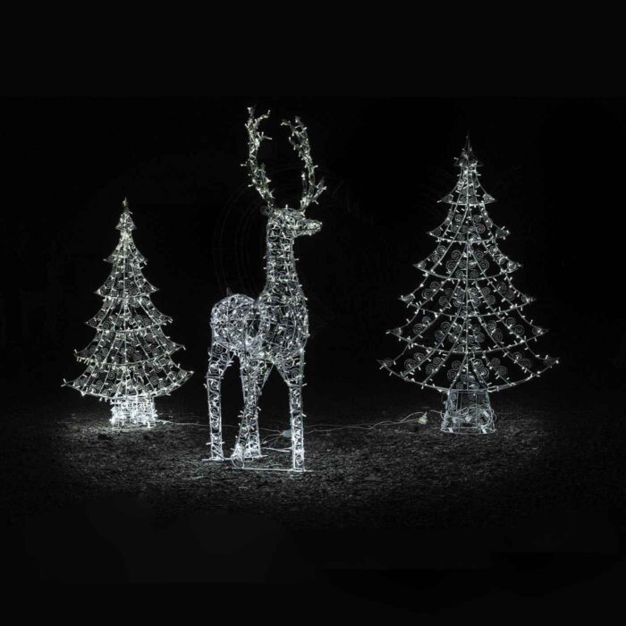 Композиция: (1 олень и 2 ёлочки: олень серия 1,9м динамика, ёлка 2м, ёлка 2,5м) OL 153, 2,5м, IP65, холодный свет