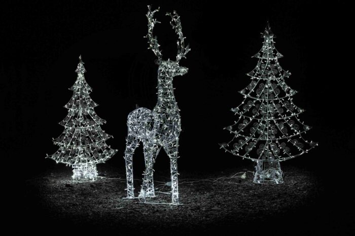 Модульная структура позволяет размещать олень и ёлочки как единой группой, так и распределить по территории для создания протяжённой природной зоны. Различные варианты расстановки создают разные визуальные эффекты.