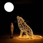 Световая композиция «Волк воет на луну» воплощает один из самых романтичных и загадочных образов природы. Силуэт волка, застывшего в характерной позе с поднятой мордой, создаёт мощную эмоциональную связь со зрителем и пробуждает первобытные инстинкты.