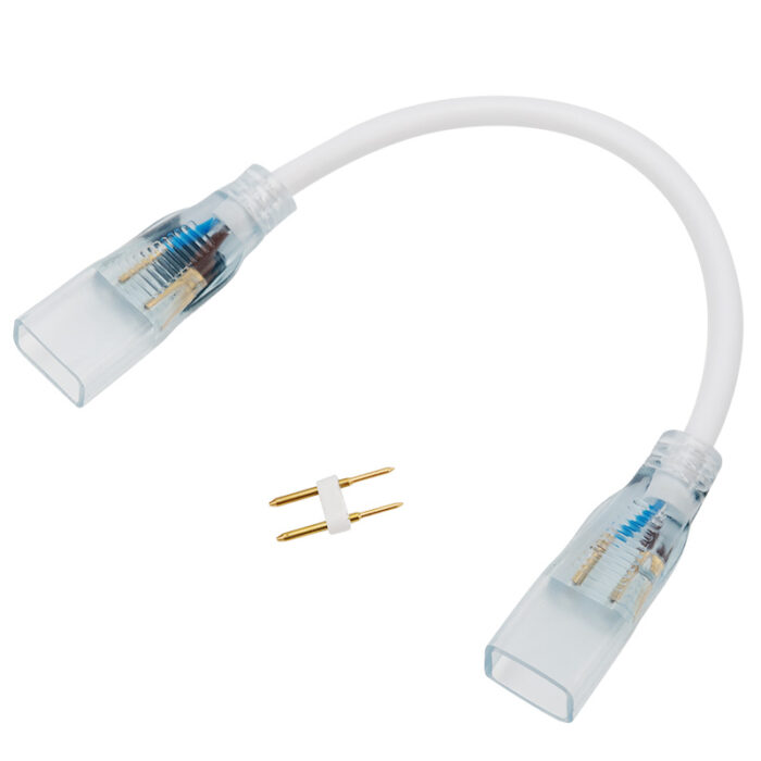 Двусторонний гибкий коннектор позволяет соединять два отрезка двухстороннего гибкого неона SMD 8х16 мм 220 В. В набор входят две иглы. Длина соединителя составляет 20 см.