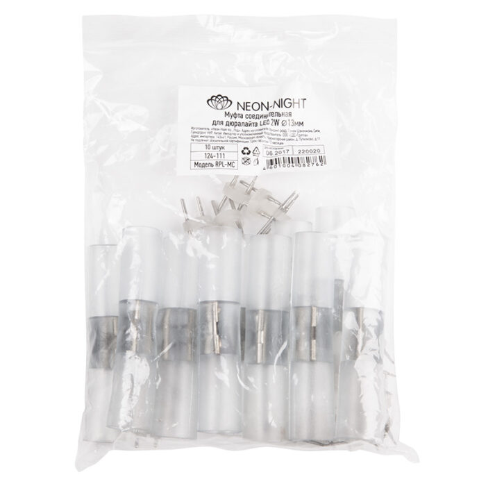 Муфта (коннектор) предназначена для соединения двух отрезков двухжильного дюралайта диаметром 13 мм. При соединении дюралайта с коннектором важно заизолировать свободное пространство коннектора морозостойким силиконовым герметиком, который будет препятствовать попаданию влаги.