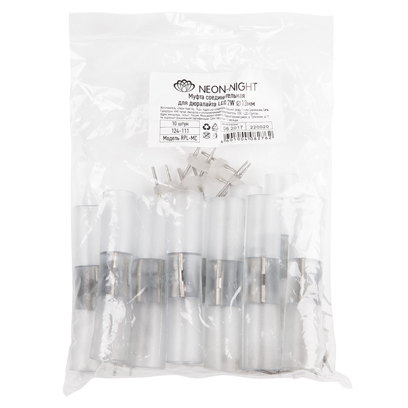 Муфта (коннектор) предназначена для соединения двух отрезков двухжильного дюралайта диаметром 13 мм. В комплект входят: коннектор, 2 иглы.