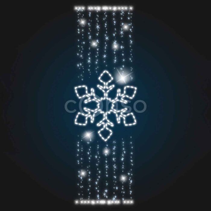Световая консоль «Снегопад» — уличная 2D-фигура из алюминия для оформления фонарных столбов. Идеально подходит для украшения улиц, ТЦ, скверов и деловых кварталов. Эффект холодного свечения создаёт атмосферу зимнего праздника. Конструкция устойчива к снегу, ветру и морозу (IP65). Высота — 2,5 м.