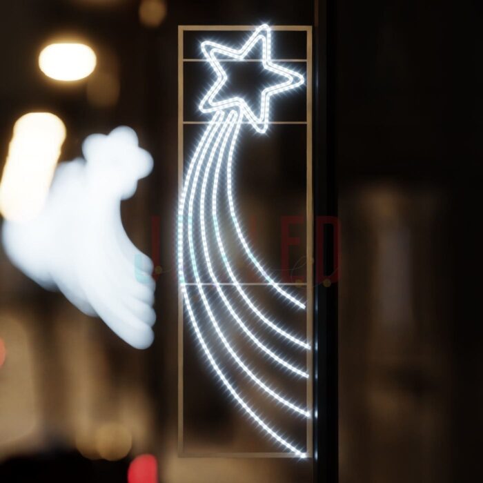 Лёгкая и эффектная консоль в виде новогодней кометы — решение для оформления улиц, ТЦ и опор освещения. Размер 0,55×1,8 м, алюминиевый каркас, свечения — синий, красный или холодный белый. IP65, надёжна при –50 °C. Ярко смотрится как поодиночке, так и в серии. Подключение — в комплекте. Гарантия — 12 мес. Поставляется в серии OPTIMA-PRO. Монтаж под ключ от JOYLED.