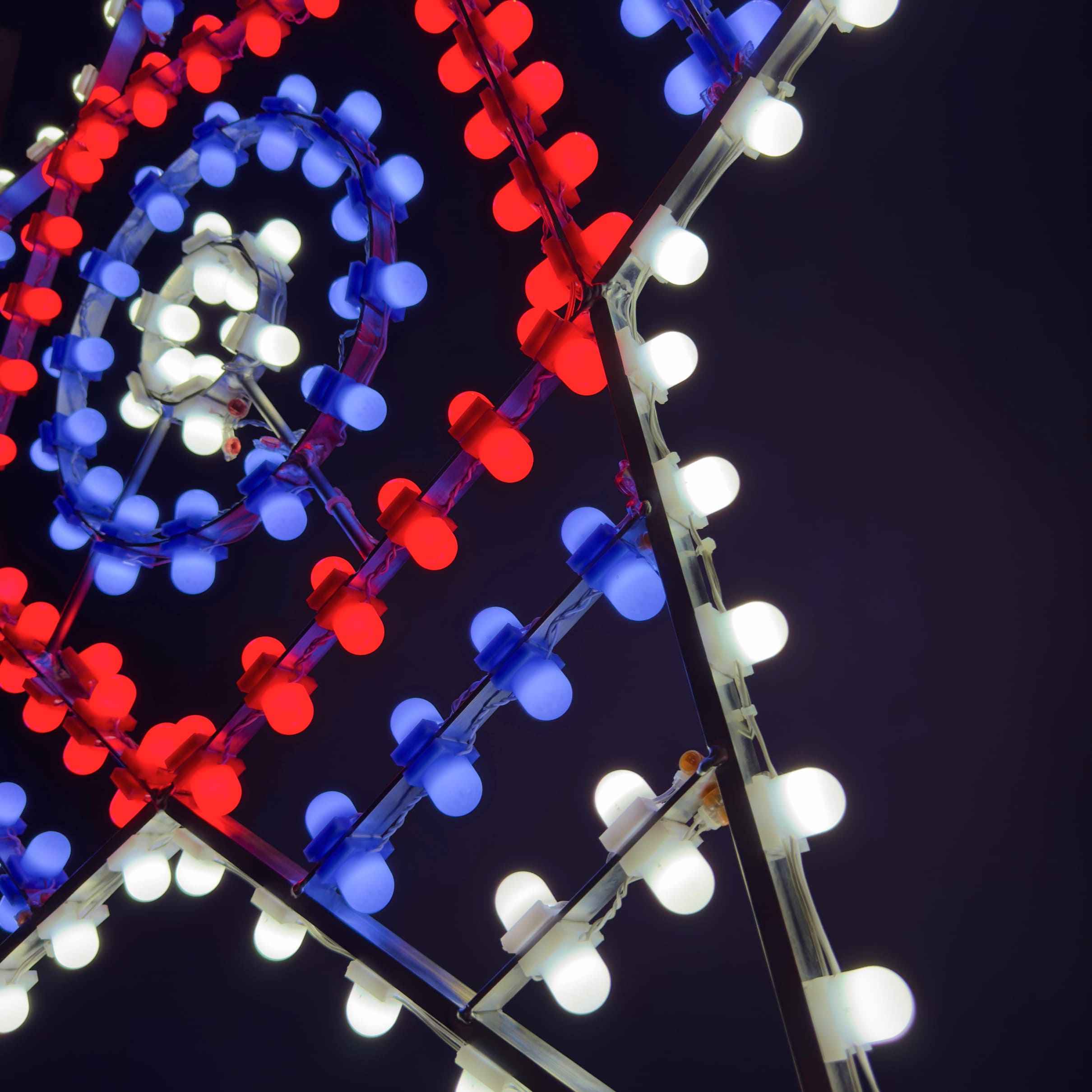 Патриотичный и эффектный акцент для городских улиц, парков и площадей. Подходит для новогоднего и праздничного оформления. Надёжная, герметичная, легко монтируется на опоры уличного освещения.