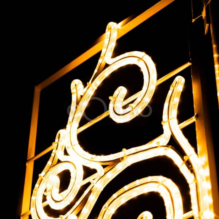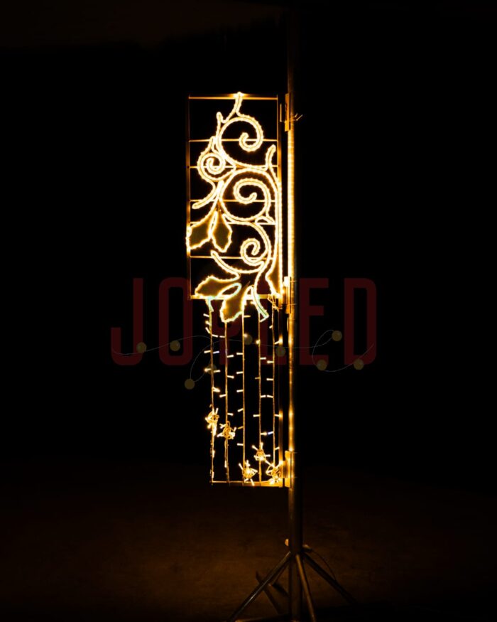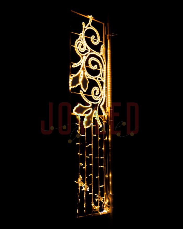 Элегантная световая консоль для украшения опор освещения к Новому году. Яркое золотое свечение, стойкий к погоде алюминиевый каркас, защита IP65. Высота фигуры — 2,15 м. Подходит для улиц, парков, ТЦ, входных групп и городских пространств. Доставка, визуализация, монтаж и оформление — под ключ от JOYLED.