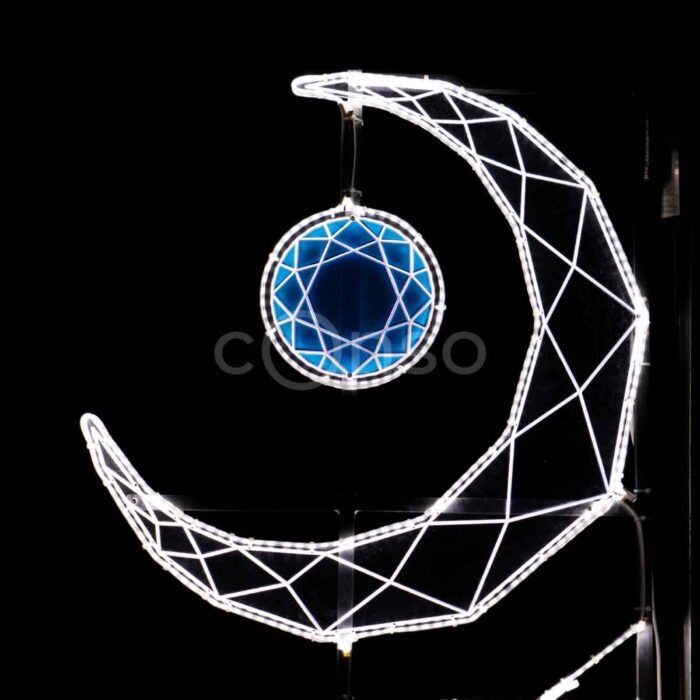 Световая консоль «Серёжка с полумесяцем» — элегантное украшение для улиц, опор освещения, входных групп. Холодное белое свечение, легкий алюминиевый каркас и защита IP65 делают её отличным выбором для круглогодичного уличного оформления. Идеально для ТЦ, парков, городских улиц и частных территорий. Доставка и монтаж под ключ — от JOYLED.