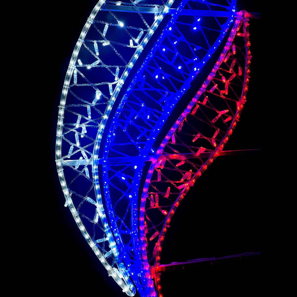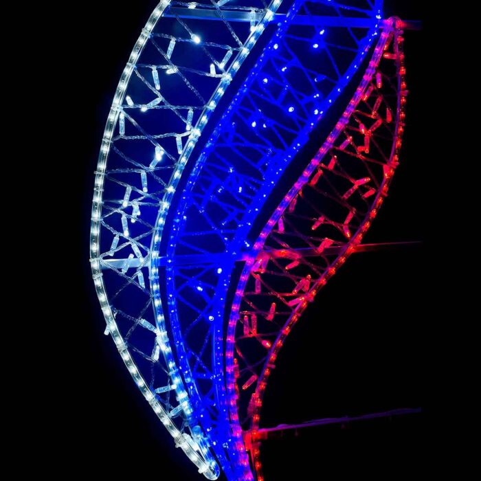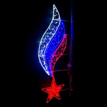 Светодиодная консоль «Звезда с Российским Флагом» — это готовое решение для украшения улиц, зданий, опор освещения и городских пространств, в котором сочетается выразительная форма и символика государственной принадлежности. Основной акцент сделан на патриотичность — узнаваемая пятиконечная звезда оформлена в цветах триколора, что делает изделие особенно уместным на государственные праздники: 9 мая, День России, День города и Новый год.