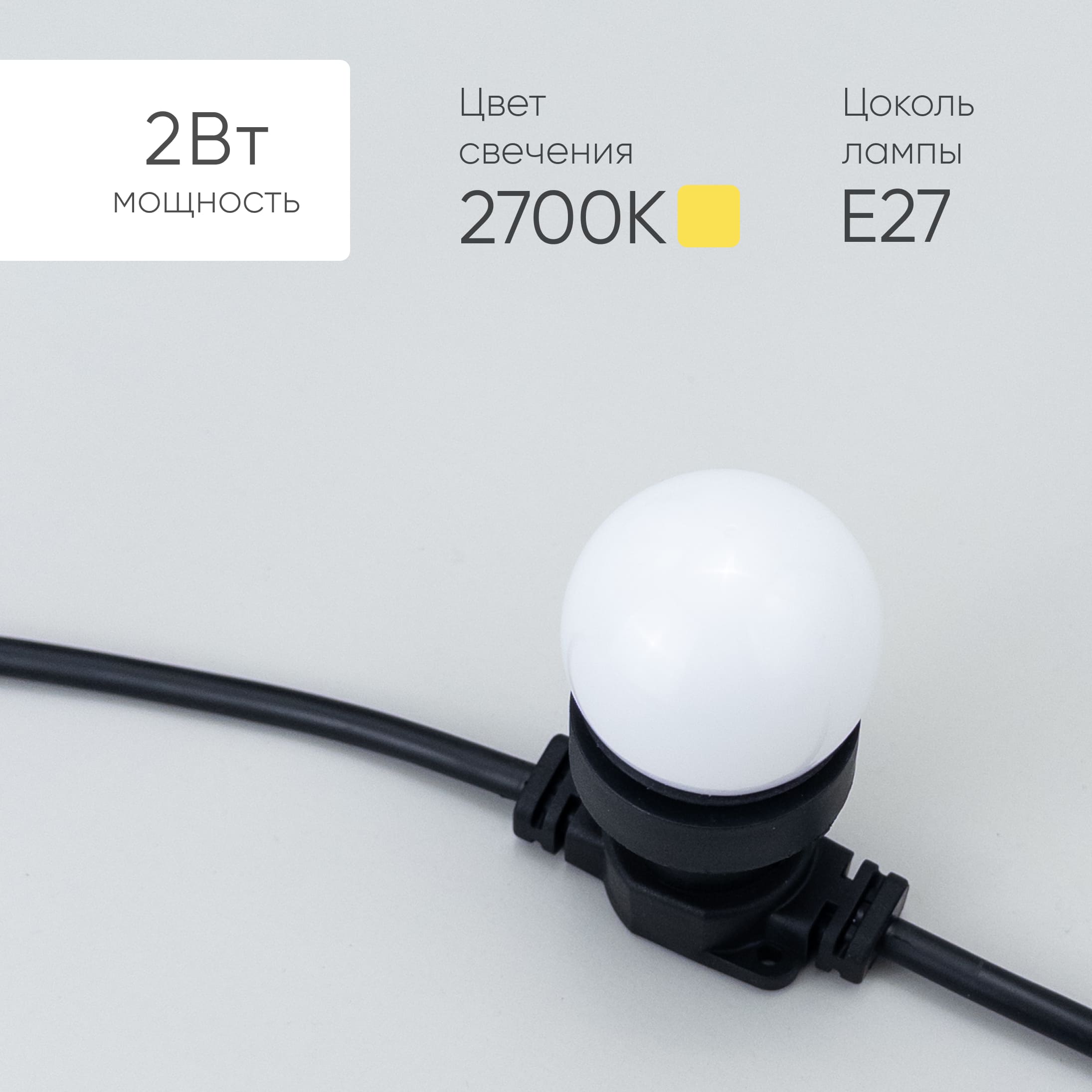 Лампа Ø45 мм для Белт-лайта 220В, Цоколь E27, 2Вт, Тепло-Белая