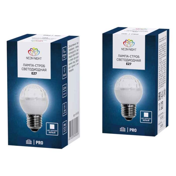 Лампа-строб светодиодная Ø50 мм, 18 LED, 230В, Цоколь E27, 2,5 Вт, Белая