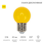 Лампа светодиодная Ø45 мм, 5 LED, 230В, Цоколь E27, 2 Вт, Желтая