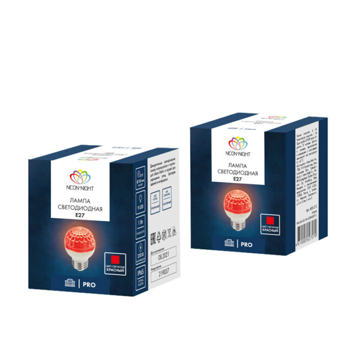 Лампа светодиодная Ø50 мм, 9 LED, 230В, Цоколь E27, 1 Вт, Красная