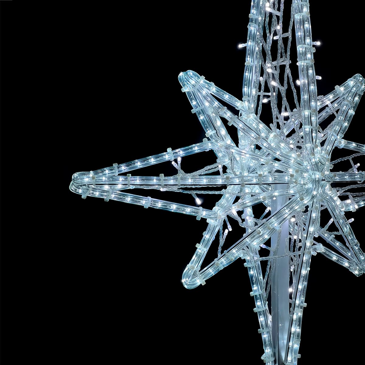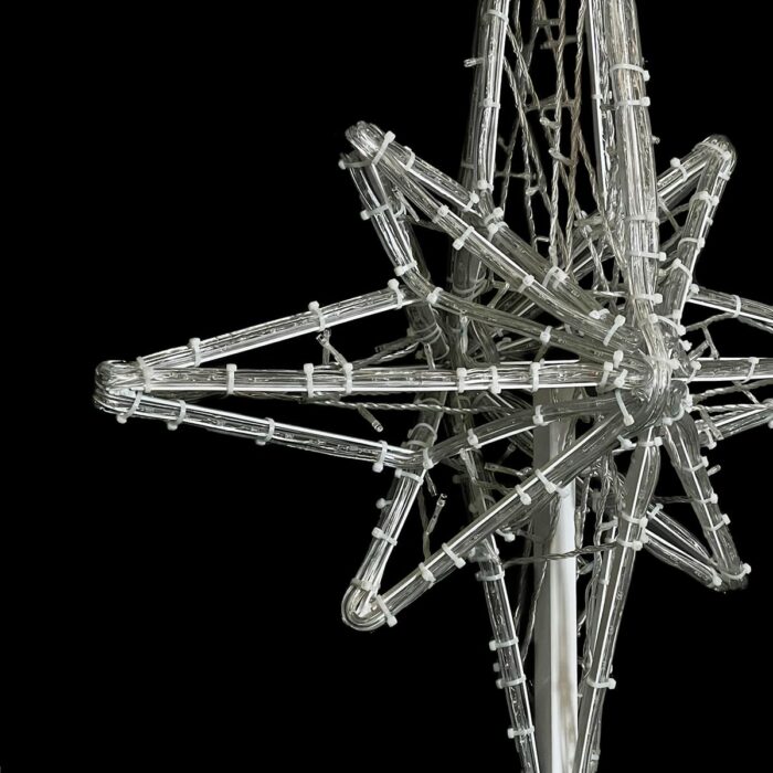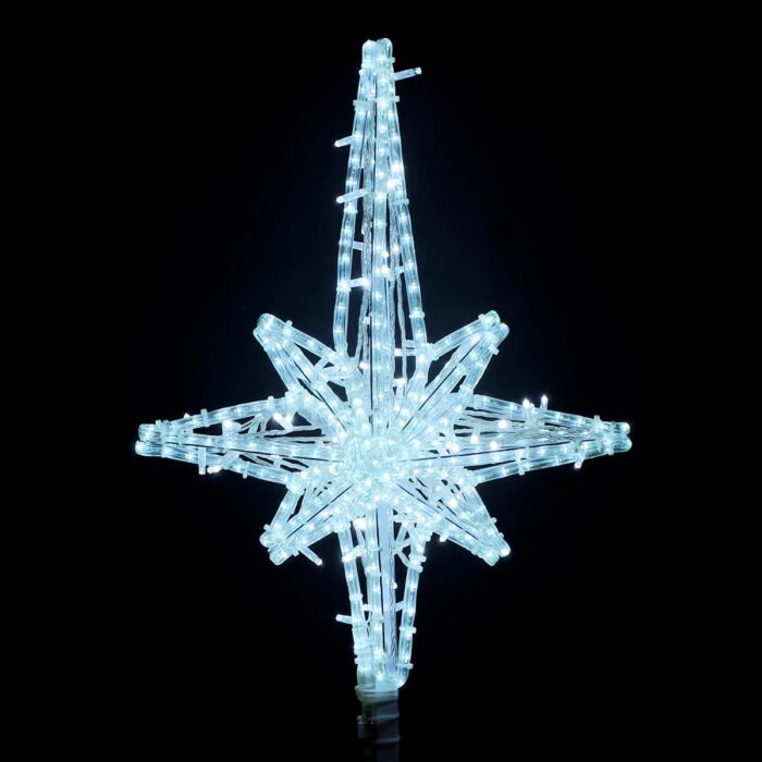 Световая макушка в форме «Розы Ветров» — эффектное украшение для городской или частной ёлки. Высота 1 м, цвет свечения — белый (или любой на выбор), каркас из прочного металла, защита IP65. Подходит для уличной эксплуатации в любую погоду. Надёжный акцент для новогоднего оформления в ТЦ, парках, скверах и жилых кварталах.
