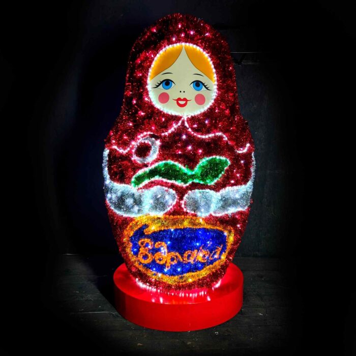 Световая фигура «Матрешка» от JOYLED — это современная интерпретация одного из самых узнаваемых русских символов. Объёмная световая конструкция с плавными линиями, декоративной подсветкой и устойчивым каркасом способна стать акцентом в любом пространстве — от городской площади до входной группы ТЦ.