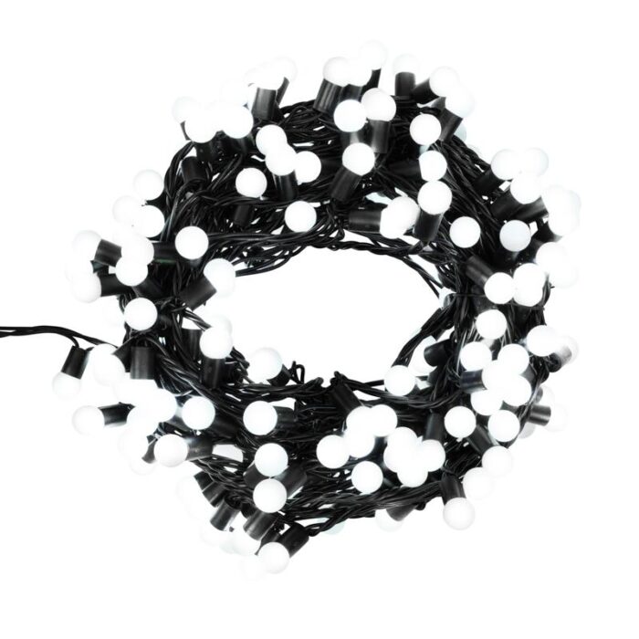 Профессиональная гирлянда мультишарики длиной 20 метров с ровным белым свечением — надёжное решение для уличного декора. Идеально подходит для украшения деревьев, перил, колонн и фасадов. Степень защиты IP65 и чёрный провод из ПВХ — для всесезонной эксплуатации. Подходит для последовательного соединения до 10 гирлянд.