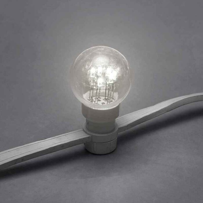 LED Galaxy Bulb String представляет собой готовый комплект для организации светового оформления, подходящий для использования как в помещении, так и на открытом воздухе. Этот комплект «Белт-Лайт» включает в себя 10-метровую гирлянду с 30 лампочками, каждая из которых имеет диаметр 45 мм.