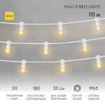 Этот комплект "Белт-Лайт" включает в себя 10-метровую гирлянду с 30 лампочками, каждая из которых имеет диаметр 45 мм. Каждая лампочка оснащена шестью светодиодами, обеспечивающими непрерывное свечение. Питание гирлянды осуществляется от стандартной электросети 220 В. Для подключения к розетке предусмотрен кабель длиной 1,5 метра с вилкой. Степень защиты IP65 позволяет использовать гирлянду как внутри помещений, так и на улице, так как она устойчива к воздействию брызг воды и температурных колебаний.