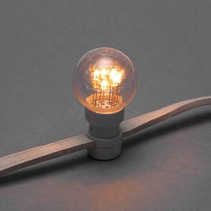 LED Galaxy Bulb String представляет собой готовый комплект для организации светового оформления, подходящий для использования как в помещении, так и на открытом воздухе. Этот комплект «Белт-Лайт» включает в себя 10-метровую гирлянду с 30 лампочками, каждая из которых имеет диаметр 45 мм.