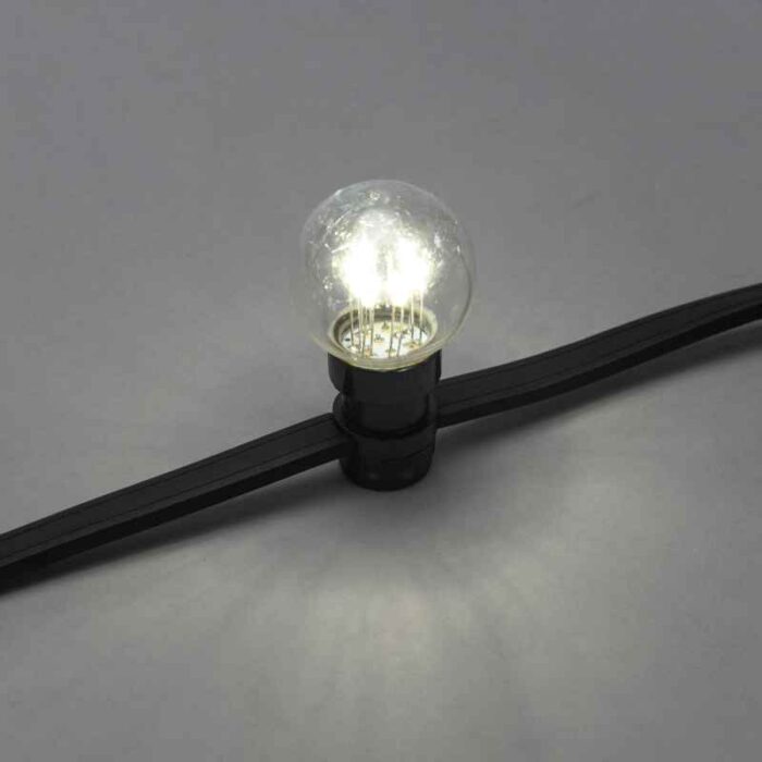LED Galaxy Bulb String представляет собой готовый комплект для организации светового оформления, подходящий для использования как в помещении, так и на открытом воздухе. Этот комплект «Белт-Лайт» включает в себя 10-метровую гирлянду с 30 лампочками, каждая из которых имеет диаметр 45 мм.
