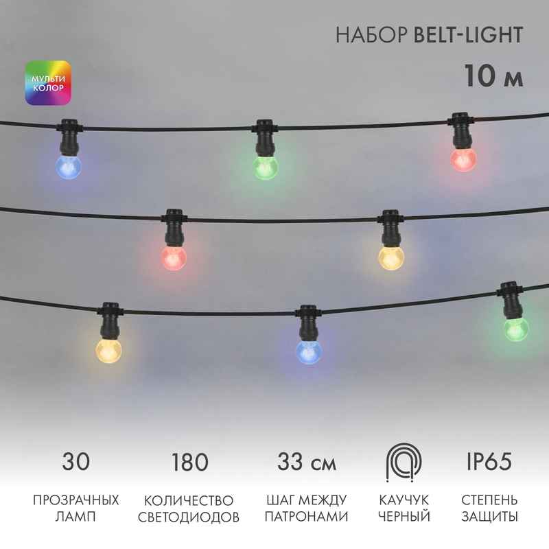 Набор Белт-Лайт 10м, Провод Черный Каучук, Шаг 33 см, 30 Мультиколор Патронов, IP65