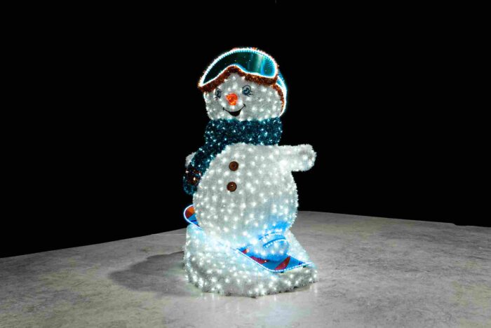 Снеговик «Сноубордист» от JOYLED — это не просто фигура, а образ, который оживляет городское пространство и делает его динамичным. Этот мишурный персонаж передаёт энергию движения, спорта и зимнего веселья. Его форма, жесты и аксессуары узнаваемы, а холодное свечение подчёркивает зимнюю атмосферу.