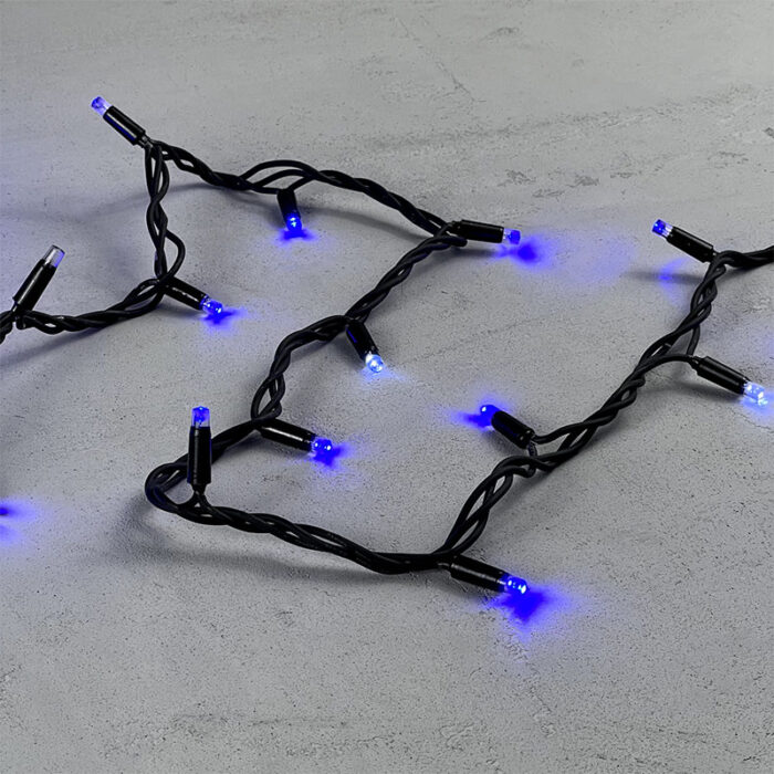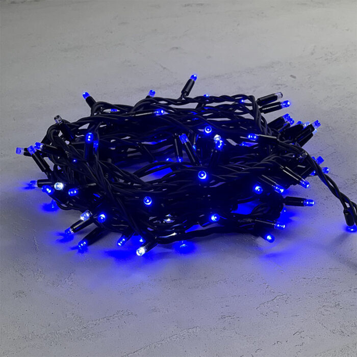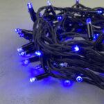 Гирлянда Нить 10 м Синяя с Мерцанием Белого Диода, 100 LED, Чёрный Каучук, 220 В, IP65, LTC
