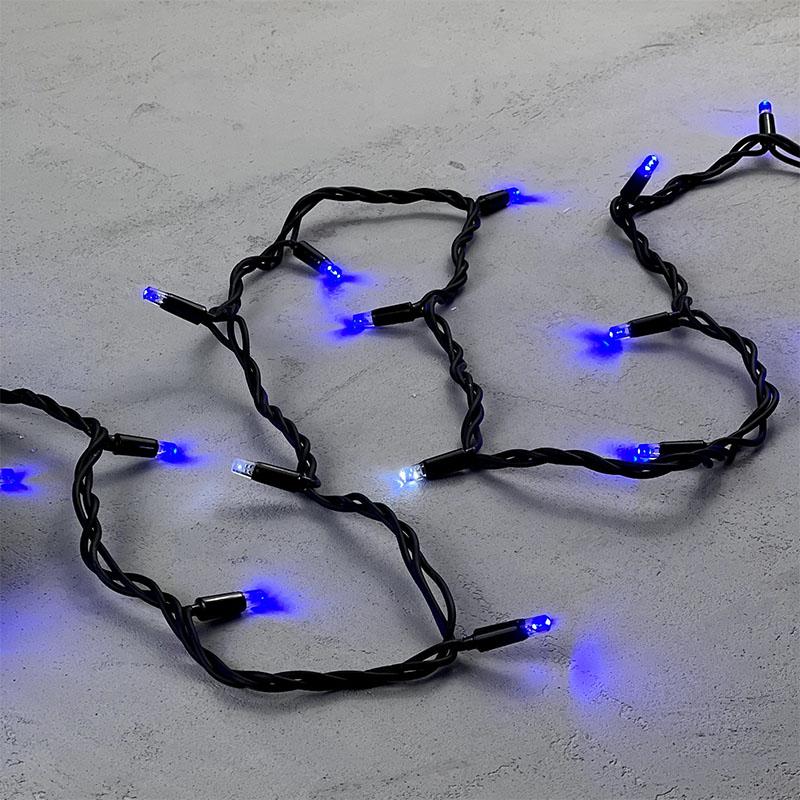 Гирлянда Нить 10 м Синяя с Мерцанием Белого Диода, 75 LED, Чёрный Каучук, 220 В, IP65, LTC