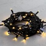 Премиальная уличная гирлянда длиной 10 м с тёплым белым свечением и эффектом мерцания. 75 ярких LED на чёрном морозостойком каучуке. Защита IP65 — подходит для круглогодичного использования. Идеальна для фасадов, деревьев и перил.