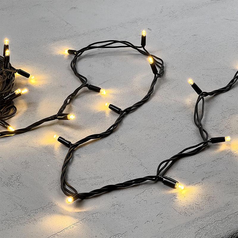 Гирлянда Нить 10 м Тепло-Белая Статика, 75 LED, Чёрный Каучук, 24 В, IP65, LTC