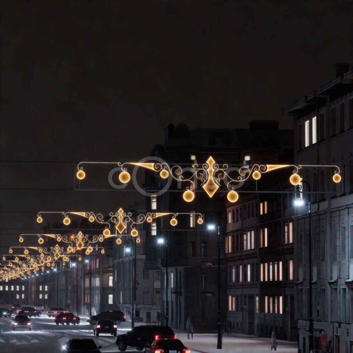 Новогодняя дизайнерская перетяжка JOYLED предназначена для масштабного оформления проспектов, центральных улиц и общественных пространств. Она объединяет эстетику современного дизайна и практичность конструкции, позволяя быстро и эффектно преобразить городской ландшафт. С её помощью можно подчеркнуть статус территории, создать атмосферу торжества и привлечь внимание жителей и гостей города.