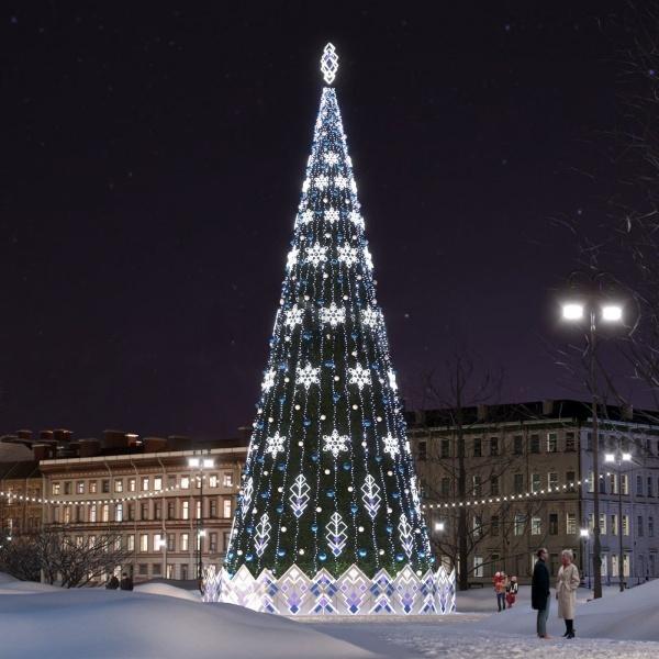 Каркас выполнен из окрашенной оцинкованной стали, что обеспечивает надёжность даже при сильных ветрах, осадках и минусовых температурах. Внутренний силовой каркас рассчитан на долгую эксплуатацию и выдерживает не только гирлянды и световые элементы, но и дополнительные декоративные мотивы, игрушки, верхушки, ограждение.
