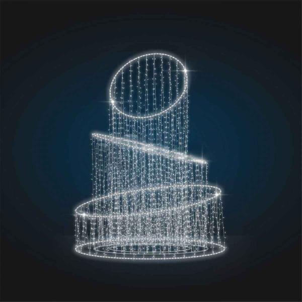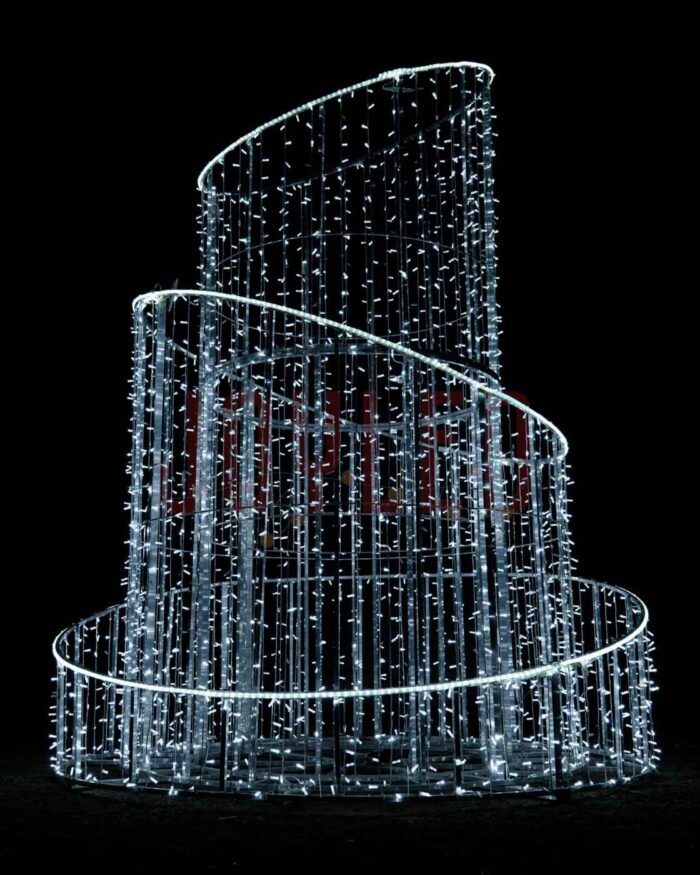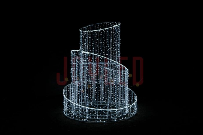 Световая композиция «Круги» — это универсальная и визуально запоминающаяся инсталляция, которая добавляет эстетики и праздничного настроения любой территории. Элемент отлично вписывается в современные урбанистические пространства, подчеркивая масштаб и статус объекта. Конструкция из алюминиевого каркаса и светодиодных элементов формирует динамичный силуэт, напоминающий струи фонтана или концентрические кольца света. Особенно эффектно «Круги» смотрятся в вечернее время — они притягивают внимание прохожих, становятся точкой притяжения и идеальным местом для фото.