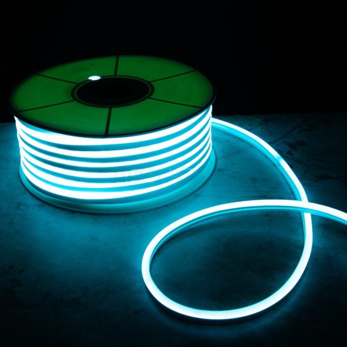 Односторонний Гибкий Неон плоский 8х16 мм, 50 м, Голубой 220В, IP65, с сетевым проводом