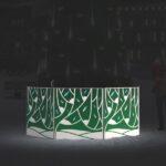 Название «Зимняя роща» говорит само за себя — панели ограждения выполнены в виде лесных узоров со стилизованными ветвями и снежинками. Рисунок прорезной, поэтому при вечерней иллюминации свет от ёлки мягко просвечивает сквозь ажурные линии, создавая ощущение глубины. Орнамент универсален и подходит как для тёплого, так и для холодного свечения основной инсталляции. Днём ограждение выглядит как архитектурный декор, вечером — как световой объект, подчеркивающий величие ёлки.