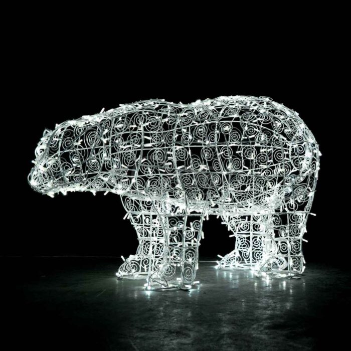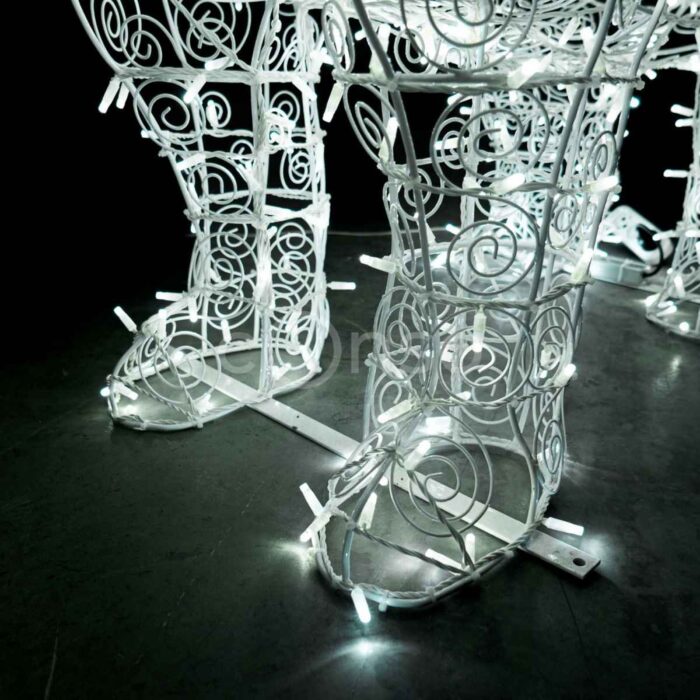 Равномерное распределение световых элементов по всей поверхности фигур создаёт мягкое, естественное освещение без резких теней и пересвеченных участков. Композиция выглядит объёмно и реалистично даже в условиях городского освещения.