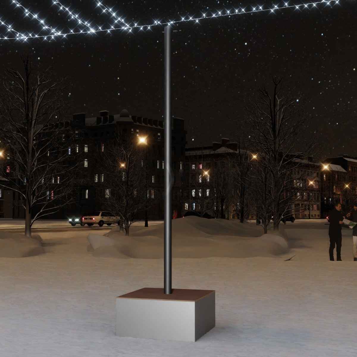 Опора для звёздного неба — основа для создания световых потолков и перетяжек. Прочная конструкция из оцинкованной стали, высота 4 м, подходит для улиц и общественных пространств. Выдерживает любую погоду, легко интегрируется в световые инсталляции. Монтаж под ключ от JOYLED.
